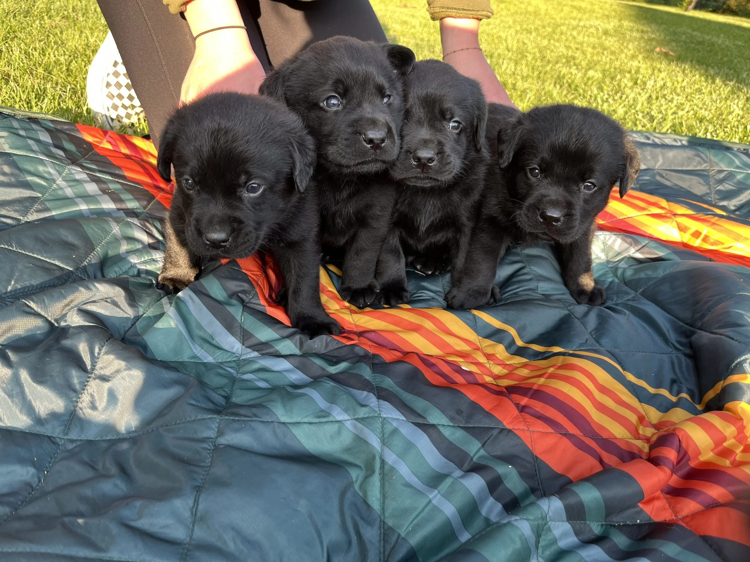 Our new litter of 10 black and yellow pups is nearly sold out - just two black males available. Call us soon as pups are ready to join their new families starting June 24.